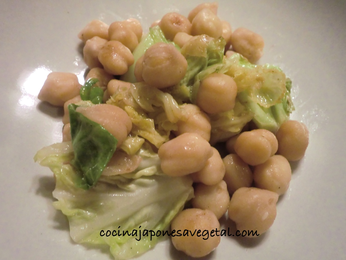Los garbanzos salteados tienen un encanto parecido al de los aperitivos de bolsas, tipo “snack”, que suelen gustar a mucha gente, pero, desde luego, son una versión más sana. El punto salado de los garbanzos se resalta en combinación con el sabor ligeramente dulce de las hojas de col tiernas.