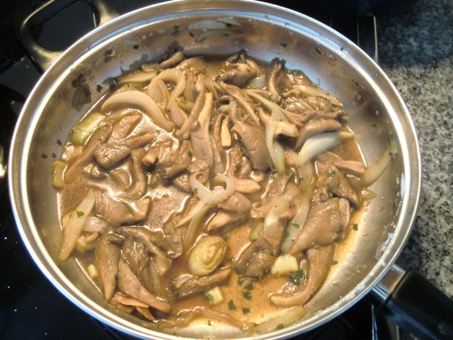 - Añadir kuzu diluido en agua y remover todo un momento. Cuando la salsa gane un poco de espesor, apagar el fuego y servir.