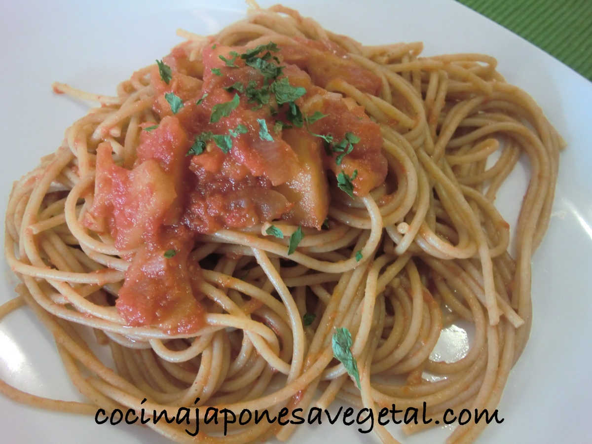 - Mezclar la salsa con los espaguetis, añadir sal si hace falta y servir.