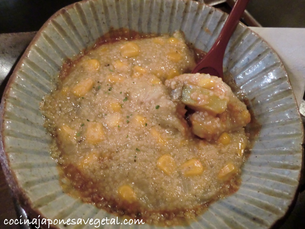 El restaurante se llama tsubu-tsubu café y en él preparan comida sin utilizar ingredientes de origen animal e intentan crear platos contundentes con diferentes clases de cereales.