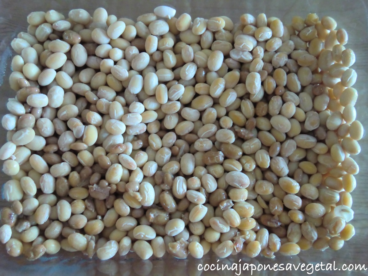 - Mezclar la soja recién hecha caliente con el paquete de natto en un recipiente limpio (preferiblemente desinfectado con agua hirviendo).