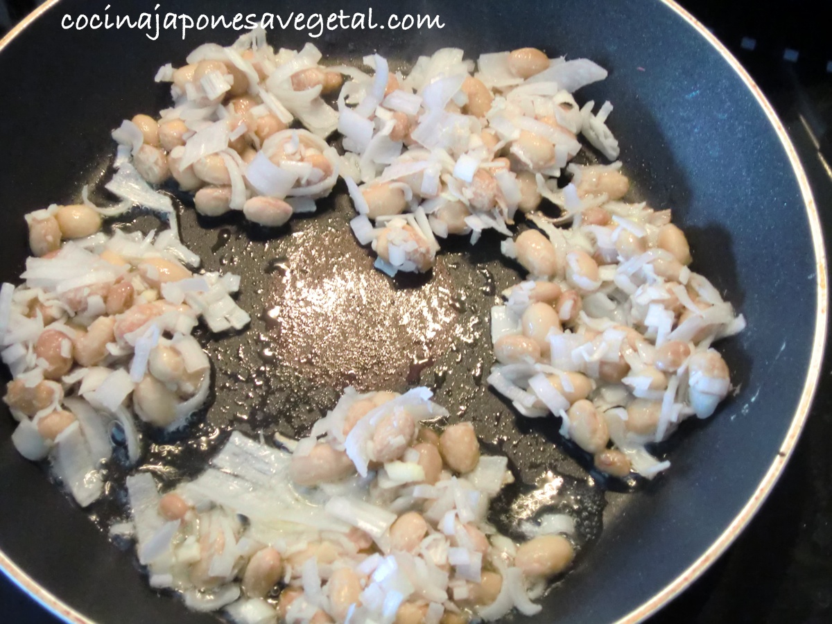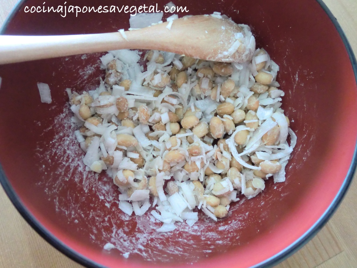 La receta de hoy es un aperitivo de natto, que al estar frito junto con el puerro, no huele tanto y tiene una textura diferente a la del natto que viene empaquetado como tal.