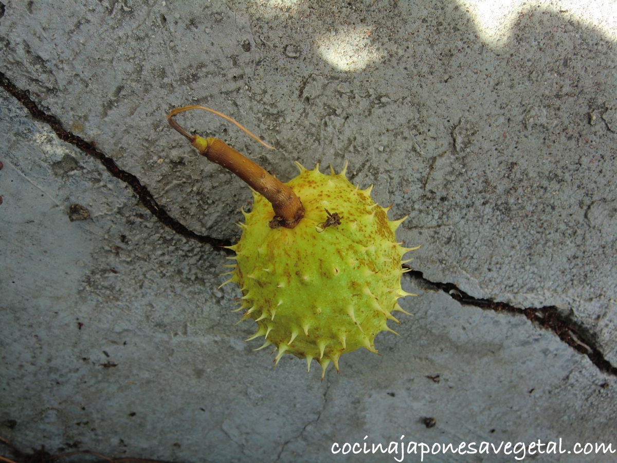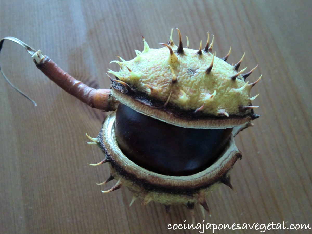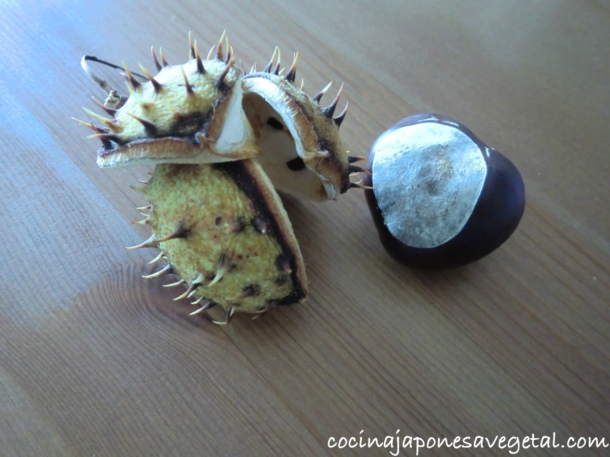El otro día, cuando cocinamos castañas dulces al horno, puse también esta castaña de Indias junto a las otras, con la intención de probar. Dicen que es extremadamente amarga y no es rica, pero bueno, tenía tanta curiosidad que no podía evitar probarlo. Y lo hice…