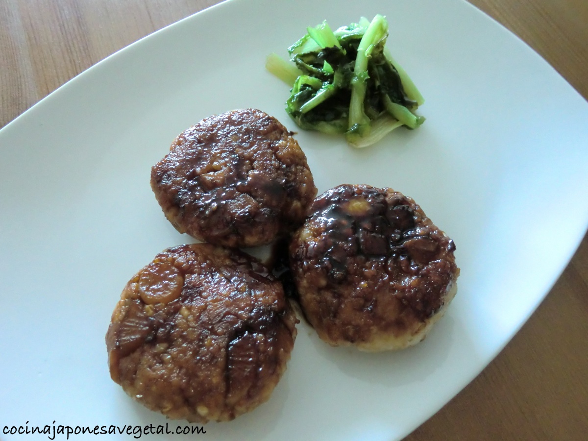 El plato de la foto es de hamburguesas de mijo pelado, trigo sarraceno y nabo con salsa teriyaki. La proporción de los condimentos para este plato fue «shoyu : mirin : sake = 1 : 1 : 1/2».