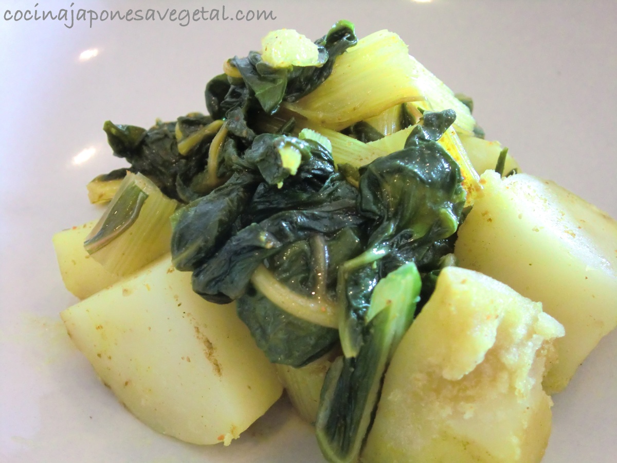 - Saltear primero las patatas con aceite de oliva y después las acelgas.