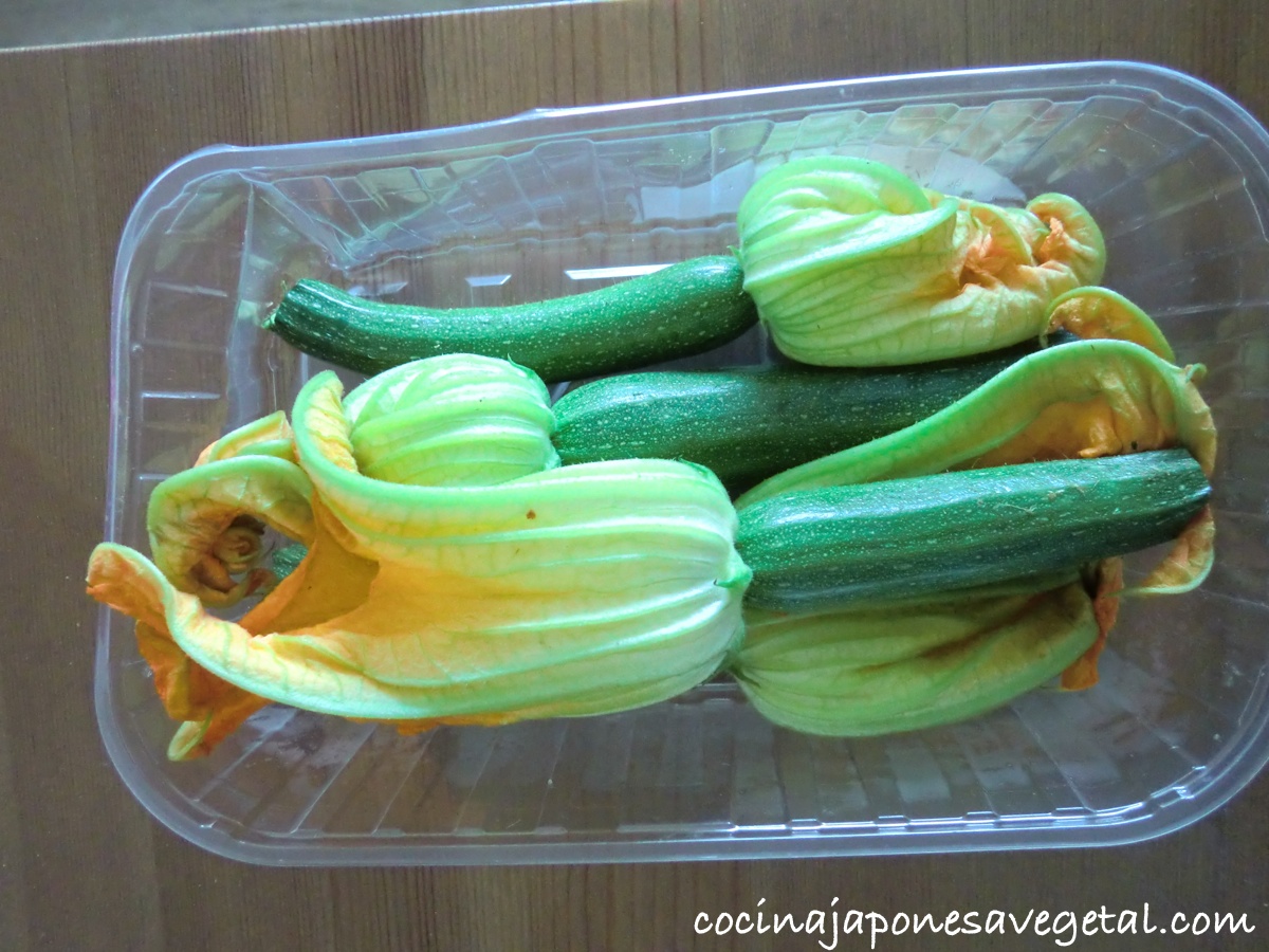 Cuando nos dijeron que eran flores de calabacín, me fijé por primera vez en el tronco verde que salía por debajo de la flor. Eran calabacines más delgados y pequeños, pero su color y su forma son los del calabacín que conocemos bien.