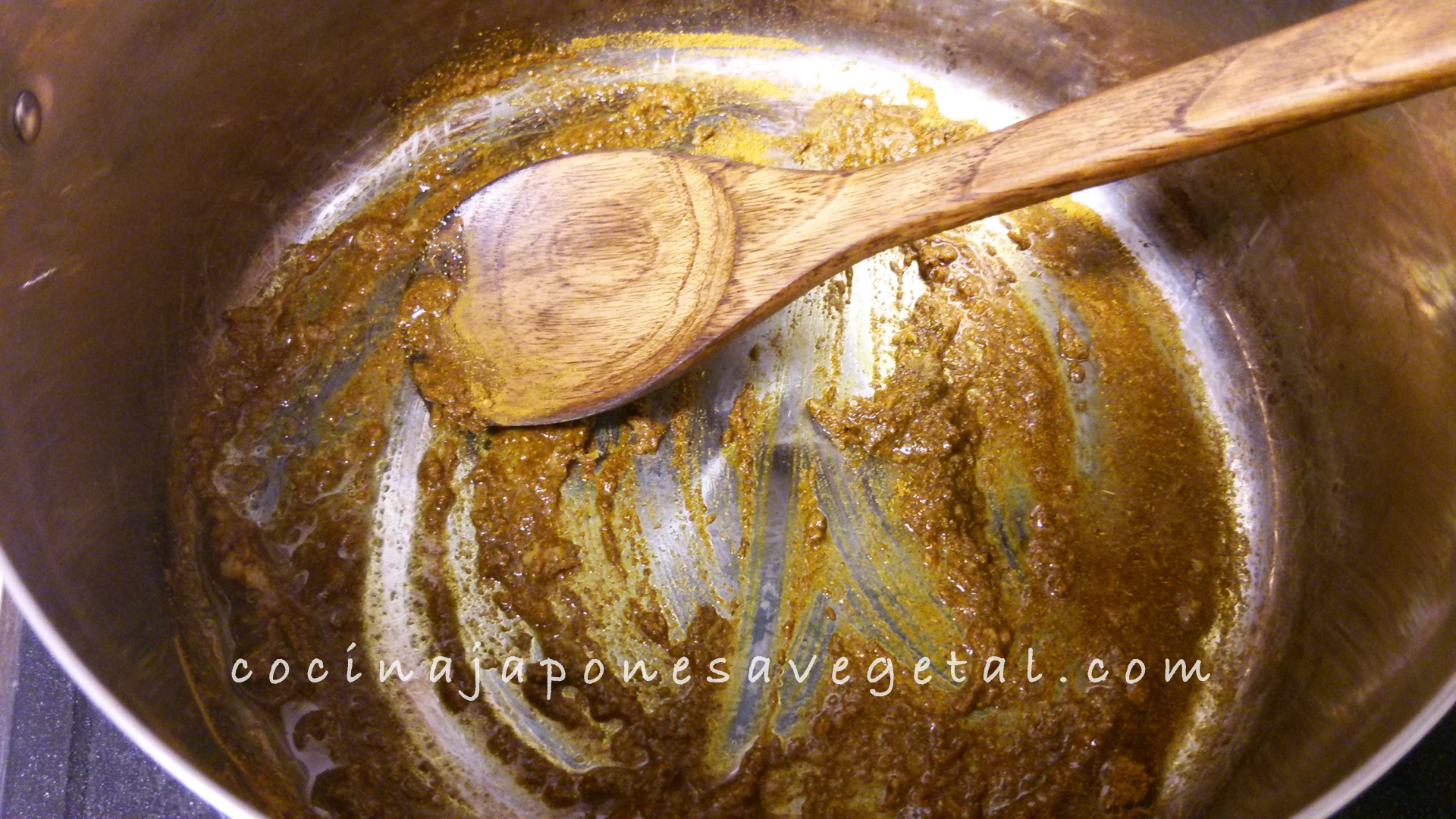 Hola me encanta la receta pues me encanta la comida japonesa y ahora quiero ser vegana, asi que la quiero probar a hacer. Solo un detalle, que no veo la cantidad de curry que hay que echar, no lo pones en la lista de ingredientes. gracias