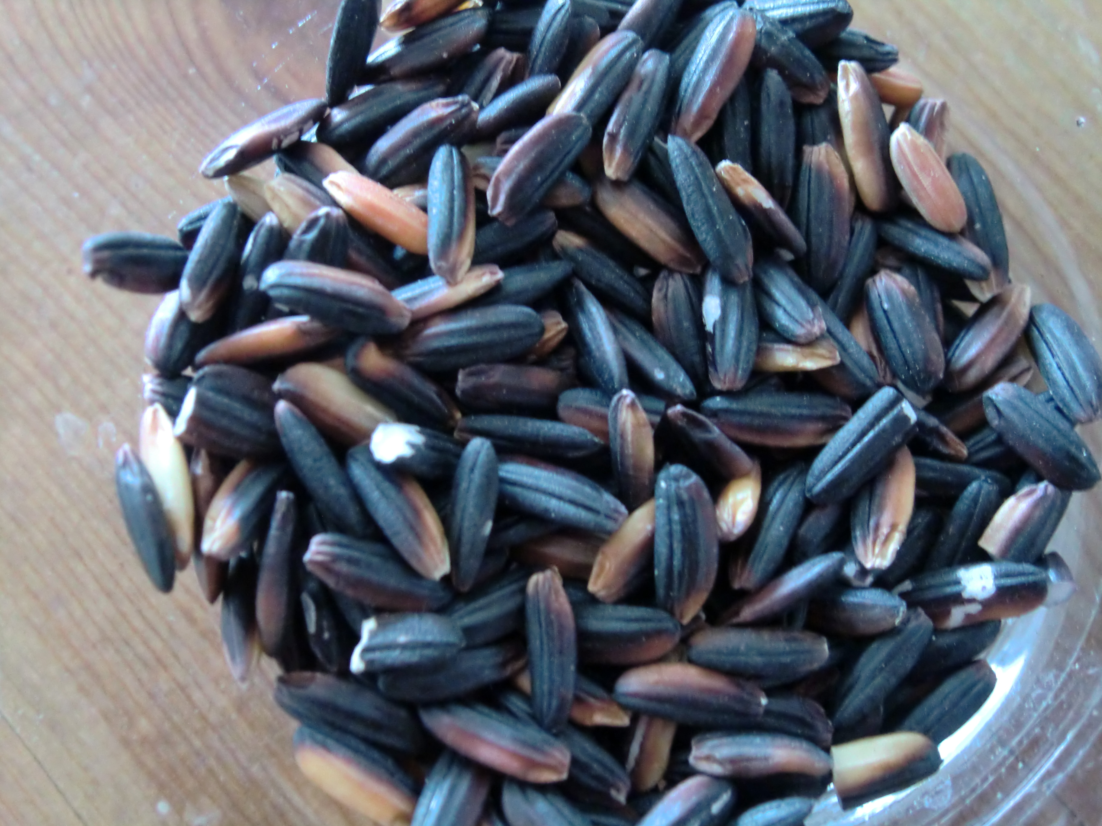 Es un arroz glutinoso, que tiene un color negro por fuera, pero su interior es blanco. Este color es en realidad lila oscuro y proviene de las antocianinas, el mismo tipo de pigmentos que contienen los arándanos.